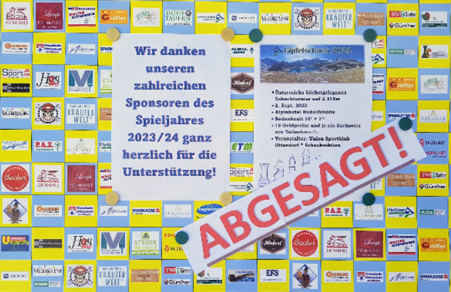 Auch im Schaukasten wurde die Gipfelschach-Absage plakatiert: